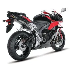• Hexagonal mufflers feature a carbon fiber outlet cap to match the design of each bike