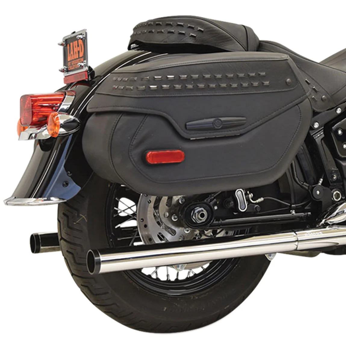 • 1-3/4″ headpipes flow into 2-1/4″ muffler bodies for increased flow