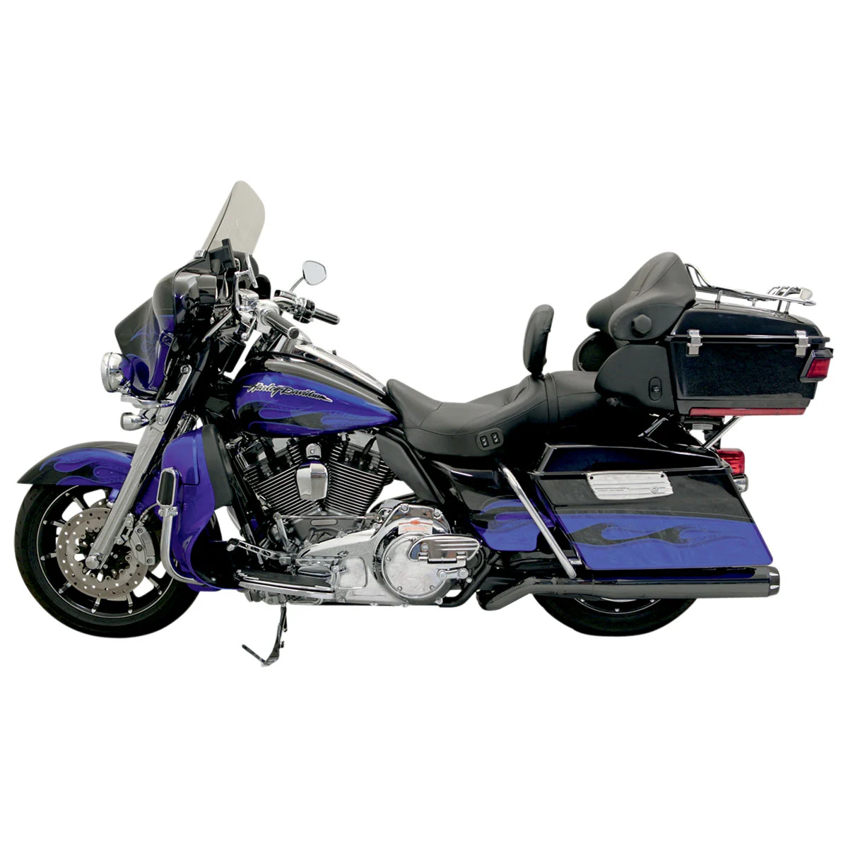 • Optional Pseudo left-side megaphone mufflers available for Bagger models for that twin muffler look; include matching non-functioning (no baffle) muffler with black billet end cap and contrasting flutes