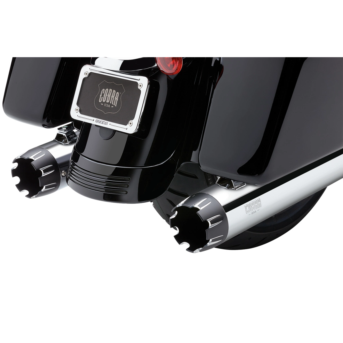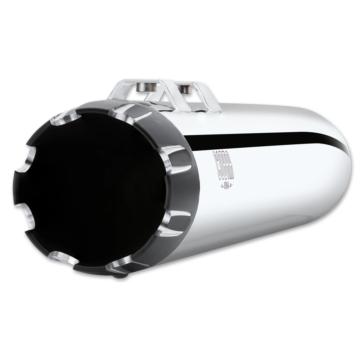 • 4″ muffler body uses a cooling chamber with proprietary technology to prevent blueing
