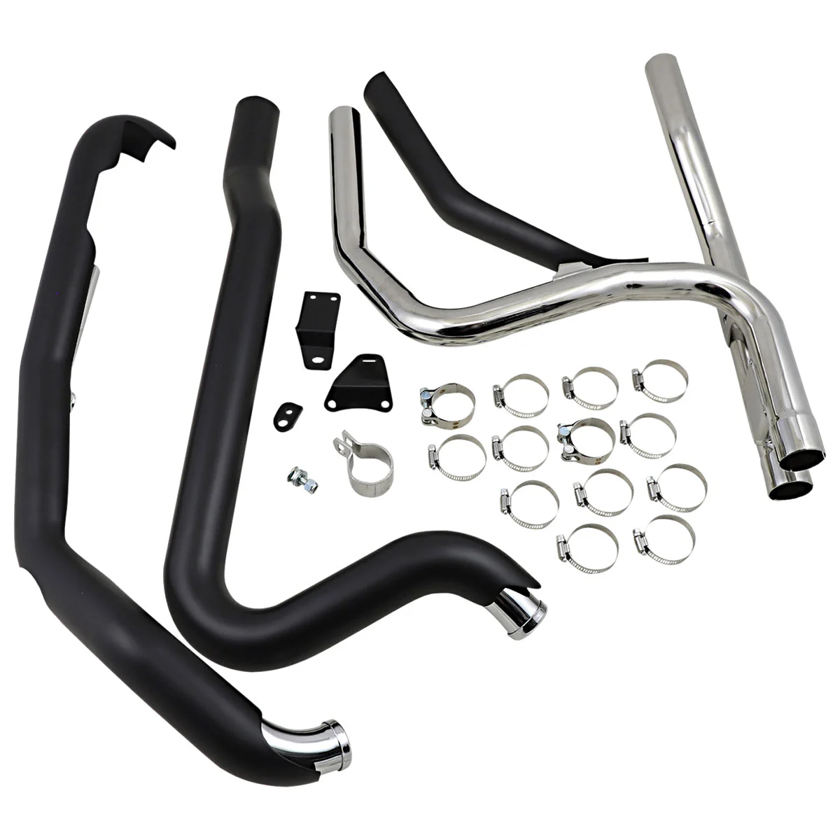• One-piece full-length, 2-1/2″ diameter black heat shields cover the pipes from the exhaust ports to your muffler bodies (sold separately)