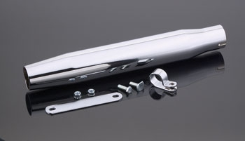 • These 2-1/2″ diameter chrome mufflers are available with 1-3/4″ inlets