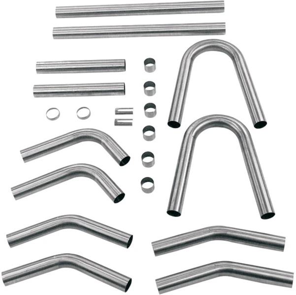 • Kit includes; two 24″ straight pies, two 15″ 30° bend pipes, two 3″ sliders, six 15/8″ od sleeves and two 12″ straight sections with two sleeves for ports