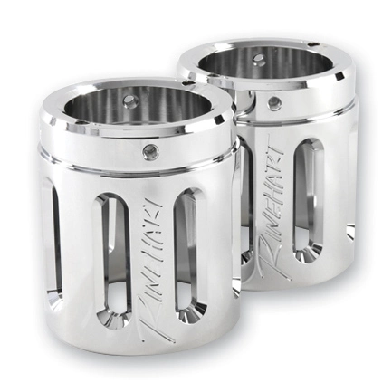 • 3-1/2″ Machined end caps designed to complement Rinehart Racing 3-1/2″ Touring True Duals and Slip-Ons