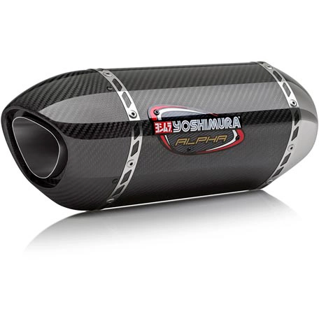 • Muffler features a large diameter carbon fiber end cap and integrated, draw-formed slash-cut muffler outlet