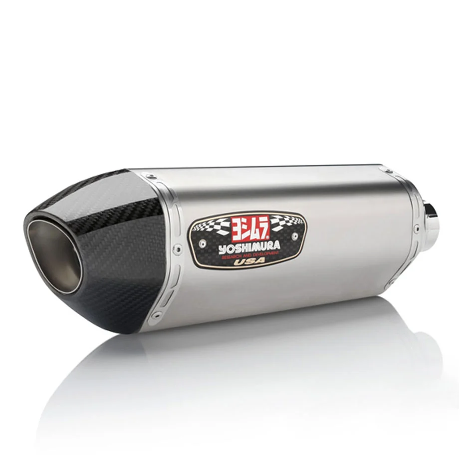 • The R-77 Slip-On Exhaust consists of a trapezoidal-shaped sleeve, maximizing muffler volume, while offering a sharp silhouette to flow with the new body design